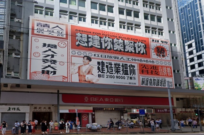 媒体位于:铜锣湾怡和街2-6号(东亚银行)上方,周边环境置地广场对面及附近知名建筑,包括中环娱乐大厦、大厦和中央塔•辐射周边专业人士,高级业务高管、高档购物者和国际游客。