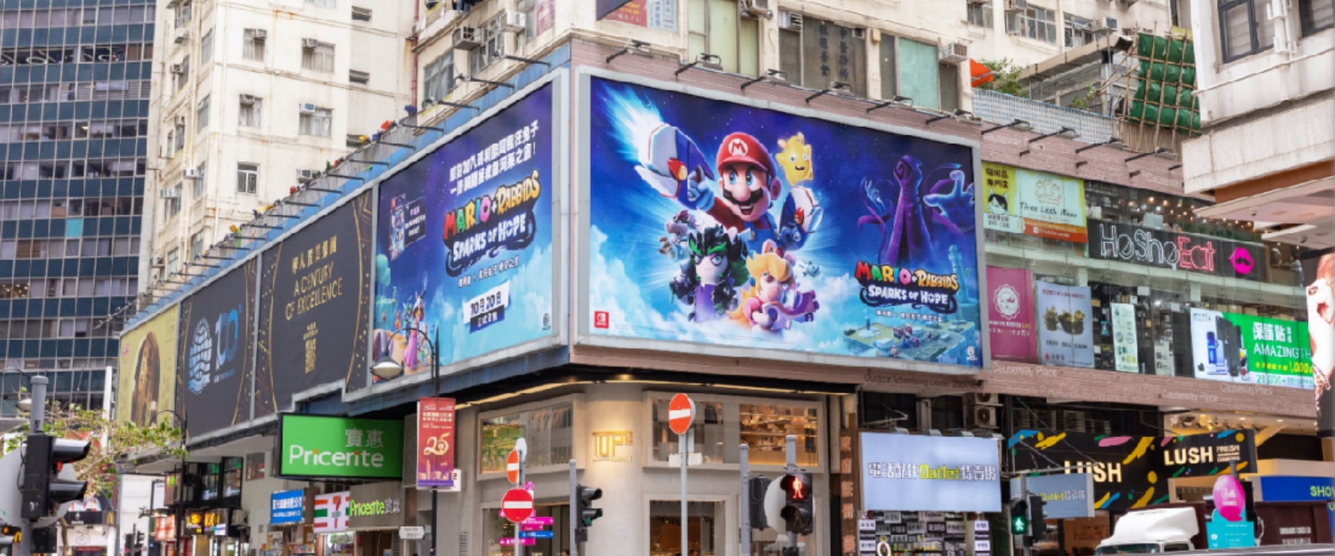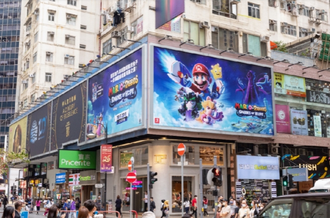 位于铜锣湾地带旁的十字路口,面向怡和街及客流极高的行人专用区,高曝光率及延长曝光时间。临近多个大型购物中心及电影院。可有效覆盖大量目标受众:富裕的消费者、娱乐及休闲活动的爱好者、于铜锣湾工作的商务精英。