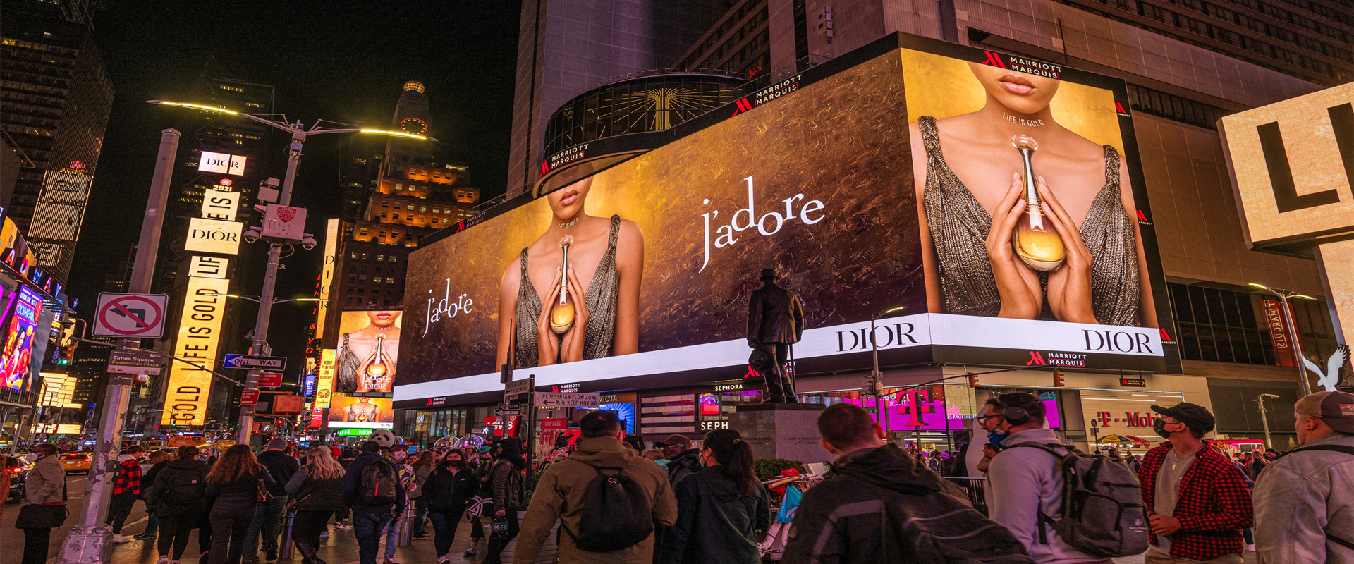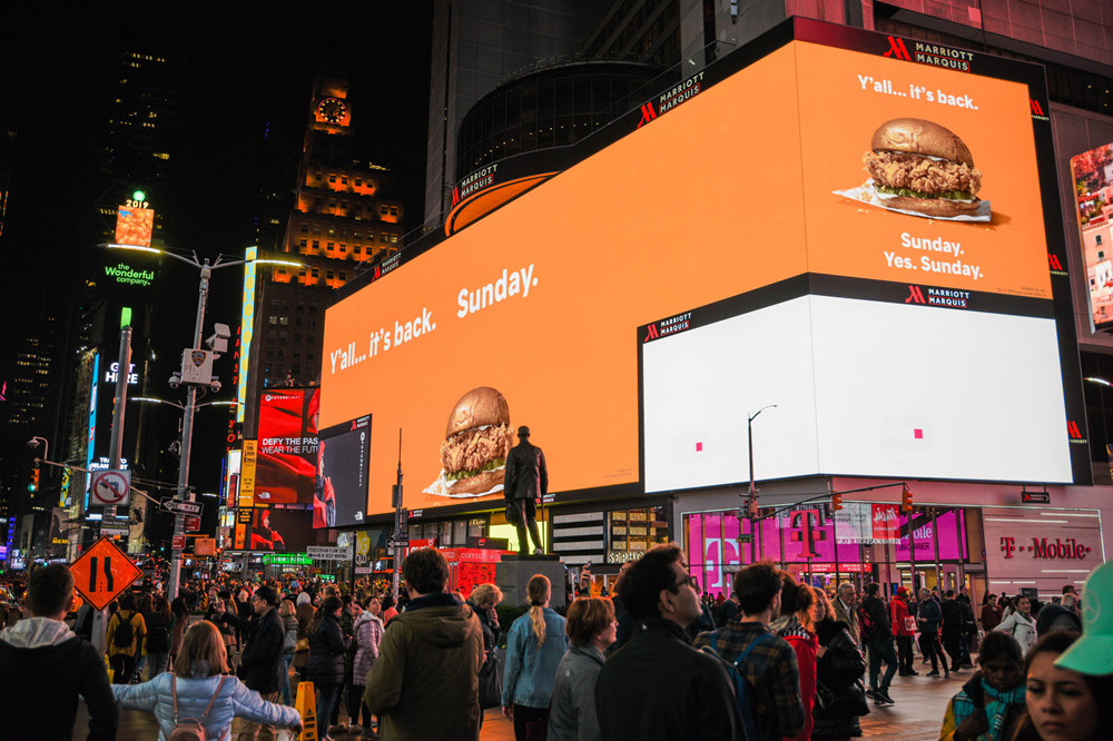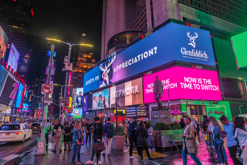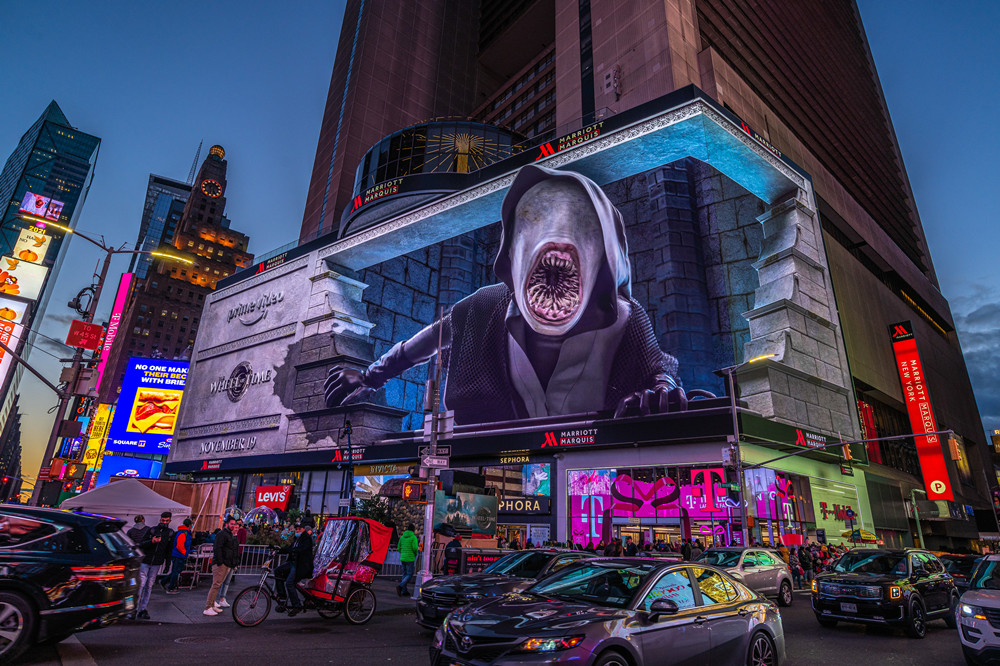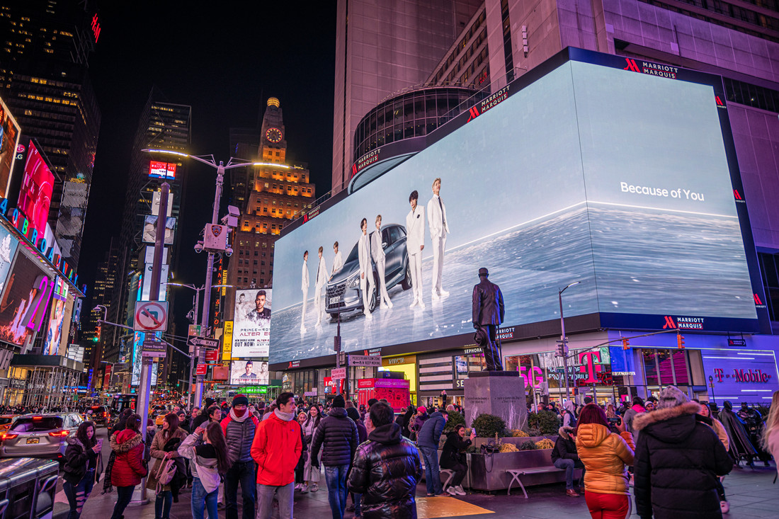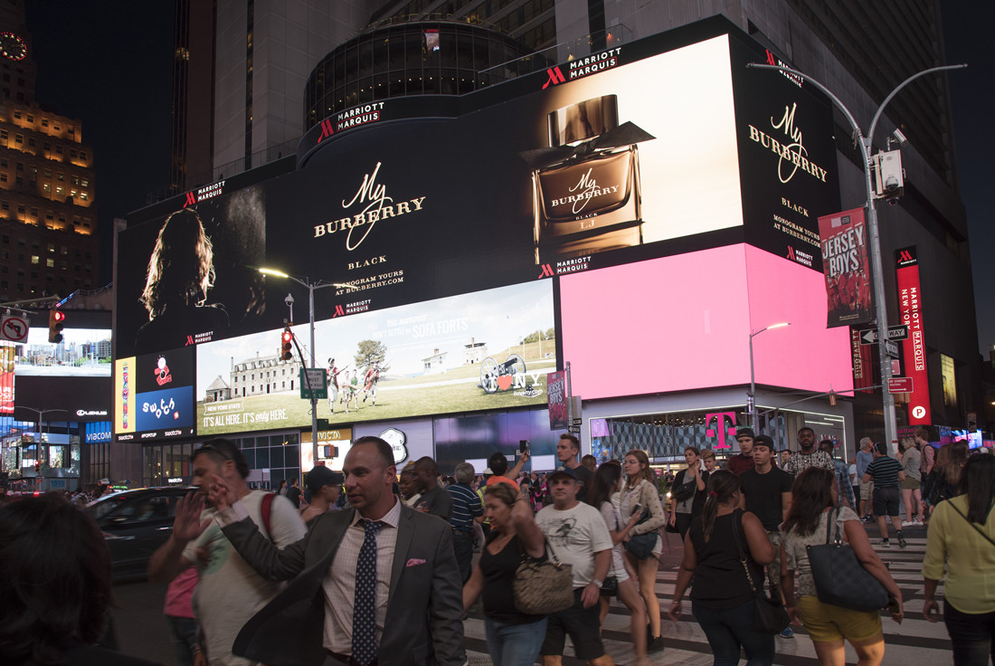 媒体位于曼哈顿街区时代广场的核心位置-万豪大酒店,临近时代广场1号楼,每日人流量达到上百万人次。附近的麦迪逊广场经常举办音乐会和大型活动。巨型的4K屏幕是时代广场极少数亮眼的媒体之一,是目前位置纽约时代广场最大最清晰的数字屏幕,常年有国际大品牌包屏上画。超震撼的广告画面,吸引了时代广场所有人的注目。