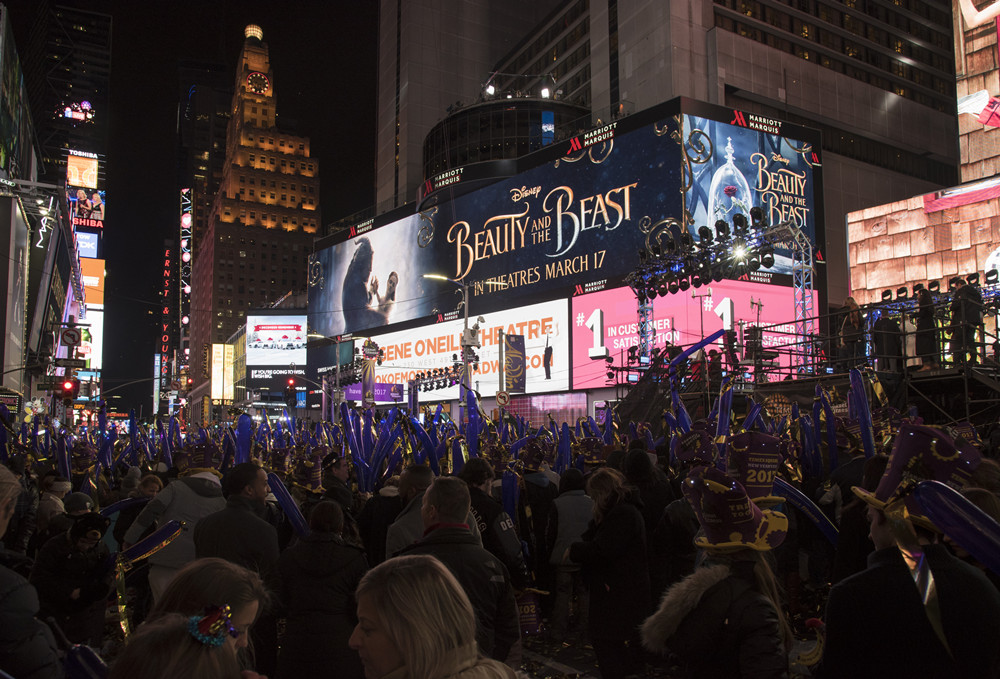 每年的12月31日,顶楼都会悬挂一颗200磅的彩球,新年来临的那一刹那,彩球打开并飘散出无数的彩带庆贺,涌动的人潮让整个时代广场氛围热烈,这里从来不分白昼,街道上游人如织,各国语言穿插其中,随处可见街头表演。