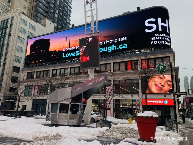 登打士广场几乎和纽约的时代广场、伦敦的皮卡迪利圆环和东京的涩谷区一样漂亮繁华,绚烂多彩。作为公共场合的登打士广场,其访客人数是很难计算的,已经成为多伦多最受欢迎的一大景点,也成为游多伦多的必游景点。