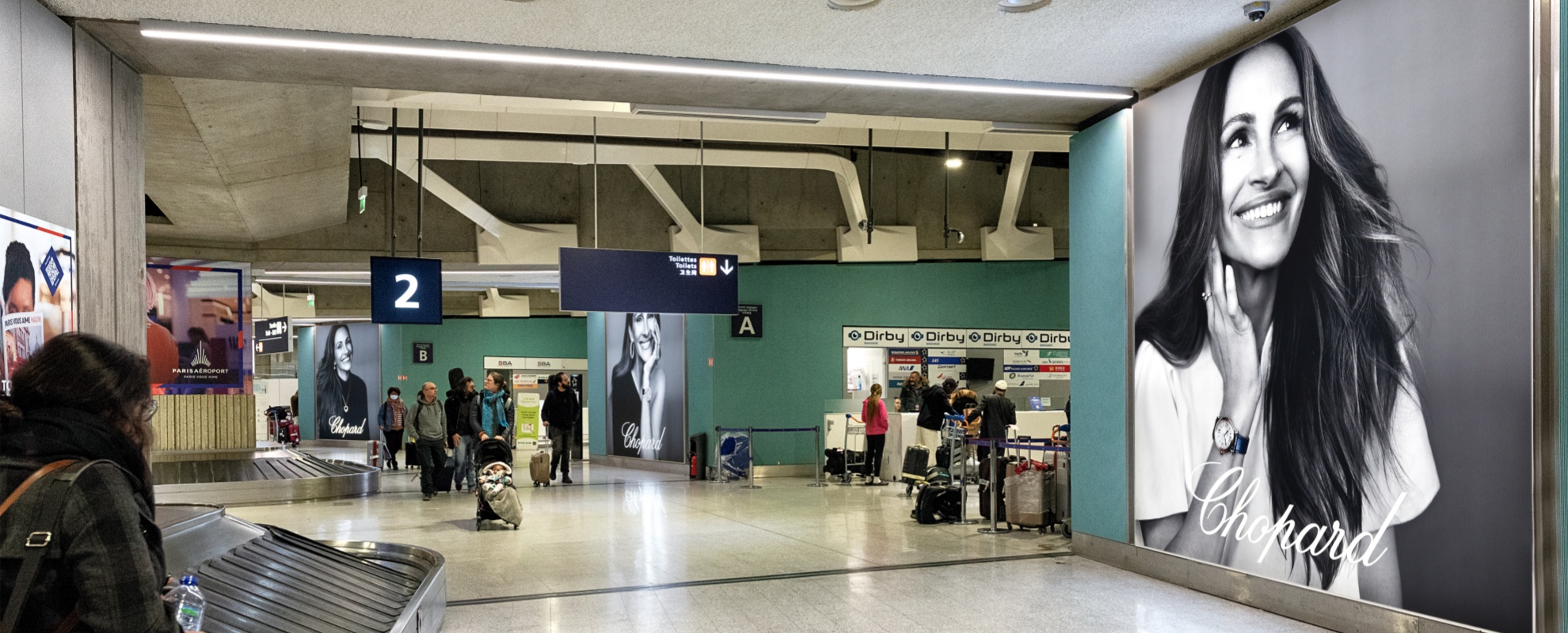 媒体位于戴高乐机场T1到达行李提取处,策略性地占据CDG1的行李提取处区域。旅游者和商务旅客在抵达机场时,通常需要购物、交通、住宿等服务,相关广告能够激发即时需求,并引导购买,在此处的品牌宣传将会是一个很好的引导,有效提高品牌知名度。