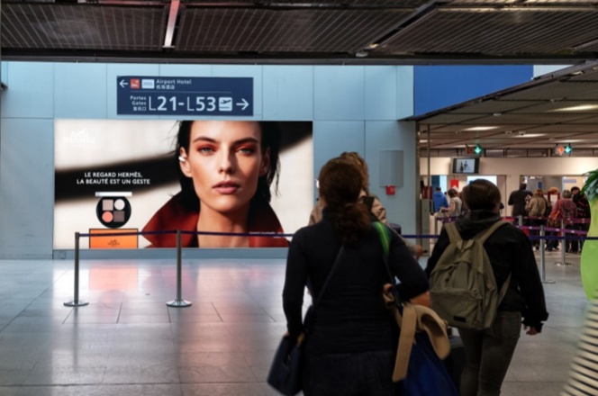 媒体位于戴高乐机场T2出发区L口位置显著,几乎所有旅客都会经过,能保证广告的高可见度。灯箱广告具备全天候展示的特点,不受时间限制,能够持续吸引乘客注意力。L 区承载着大量商务旅行者和高端休闲旅客,他们通常具有较高的消费能力和品牌关注度。