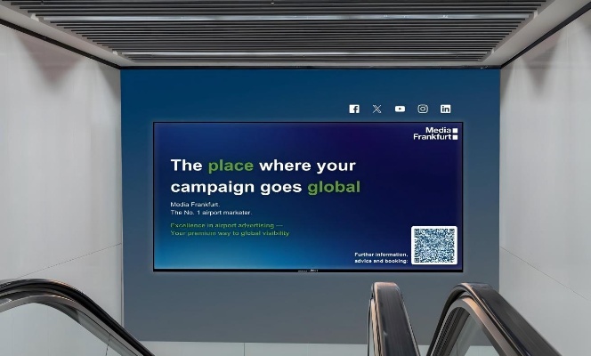 这个媒体位于法兰克福机场T1到达非申根, 位于电梯口上方,可以吸引到所有使用电梯的旅客的眼球, 视觉效果震撼,有利于品牌内容的传播。