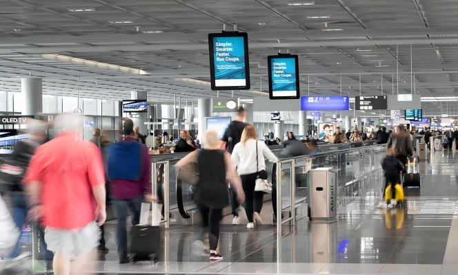 媒体位于富兰克林机场T1航站楼到达非申根,共11面组成, 可以覆盖到达乘客,分布于到达大厅关键位置,视觉效果好, 有利于广告内容的传播。
