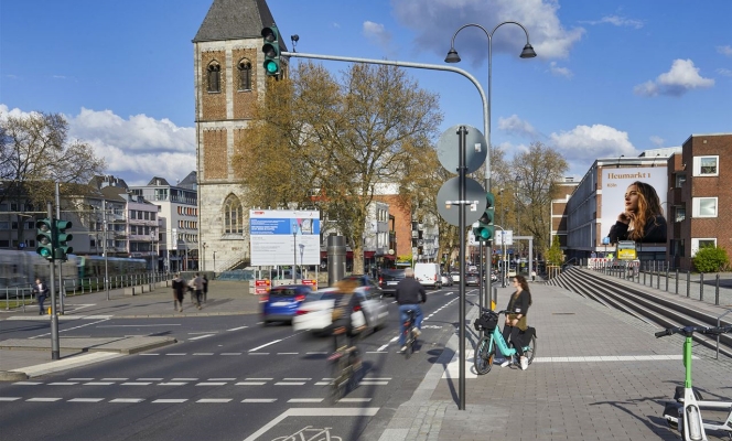 在科隆的Heumarkt广场,受益于城市中心的位置和繁忙的交通。作为科隆最重要的广场之一,在Neumarkt、Schildergasse、Hohe Straße购物街和老城区之间,科隆的老城区吸引着每一个喜欢科隆生活方式和典型的科隆酒吧的人。也有各种各样的酒店,比如著名的Maritim是商务和旅游目标群体。