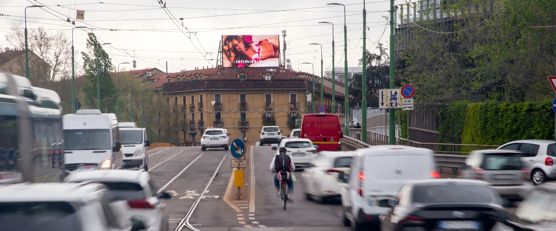 媒体位于意大利米兰Via Giovanni Cimabue街2号,距离唐人街13分钟左右的开车路程, 靠近非常受欢迎的Fs Garibaldi火车站和Gae Aulenti广场的新商务中心。人车流量大。 周边学校,商店,购物中心,公园,公交站等设施完备,是人群非常聚集的区域。 媒体本身位于楼体顶部,可视距离远,视觉冲击力强,是品牌曝光的绝佳选择。