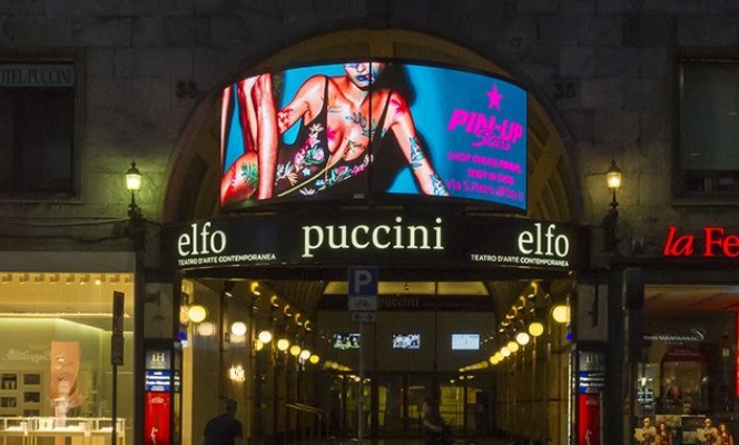 媒体位置:意大利米兰Teatro Elfo Puccini入口处
