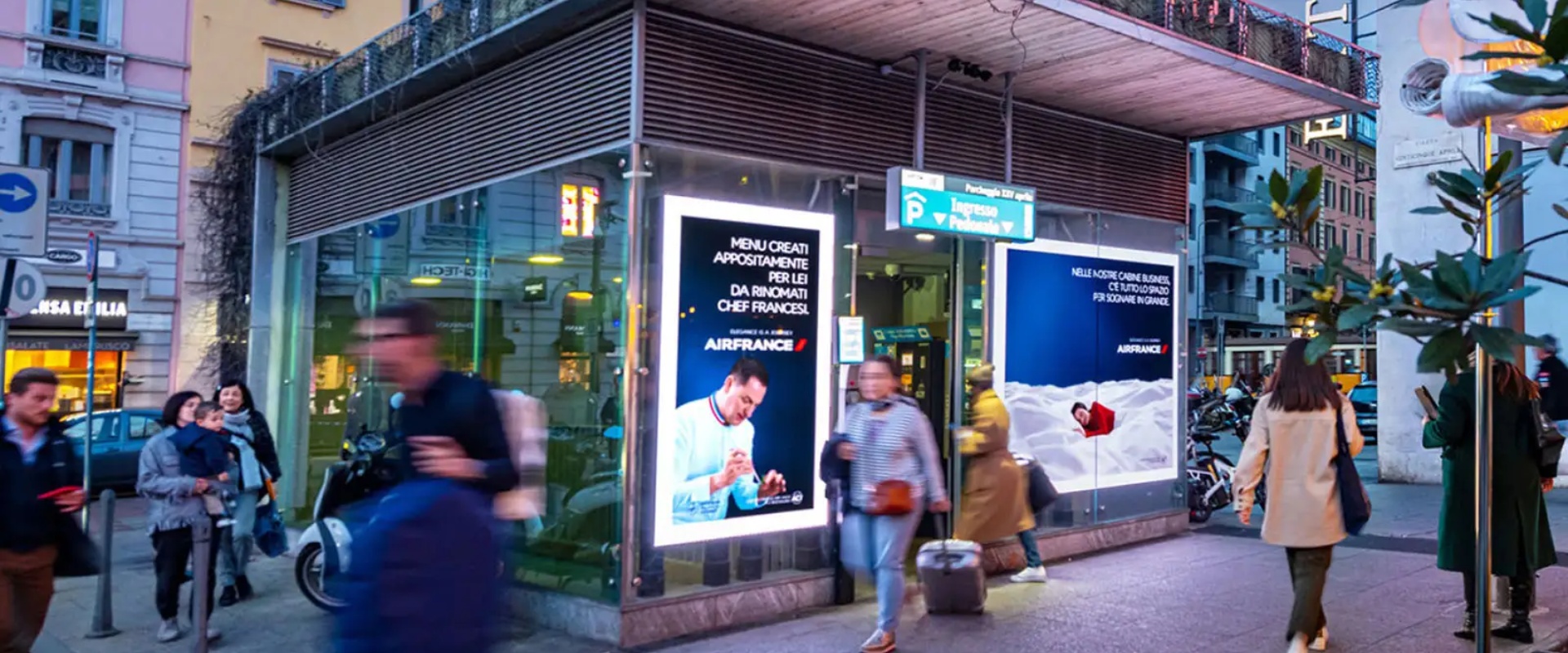 媒体位于意大利米兰Piazza XXV Aprile, Piazza XXV Aprile是米兰的一个广场, 连接科莫大街(corso Como)、加里波第大街(Corso Garibaldi)、viale Pasubio和viale Monte Grappa。 周边学校商场,餐厅,公交站,酒店,公园等设施完备,人群非常聚集,适合各类品牌进行宣传。