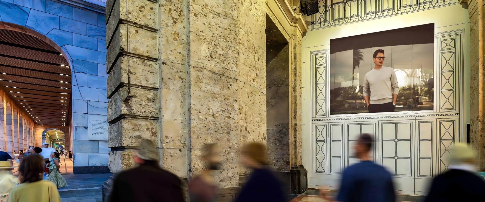 在宏伟的历史建筑群中,现代化的高清屏幕将成为古典与现代交融的视觉奇观,吸引所有目光。