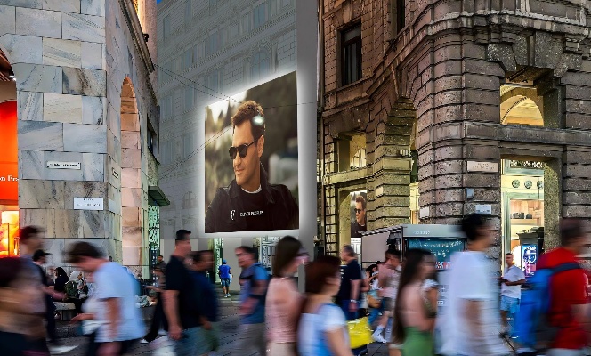 屏幕位于米兰大教堂、埃马努埃莱二世拱廊和文艺复兴百货这三大核心地标的交汇点,