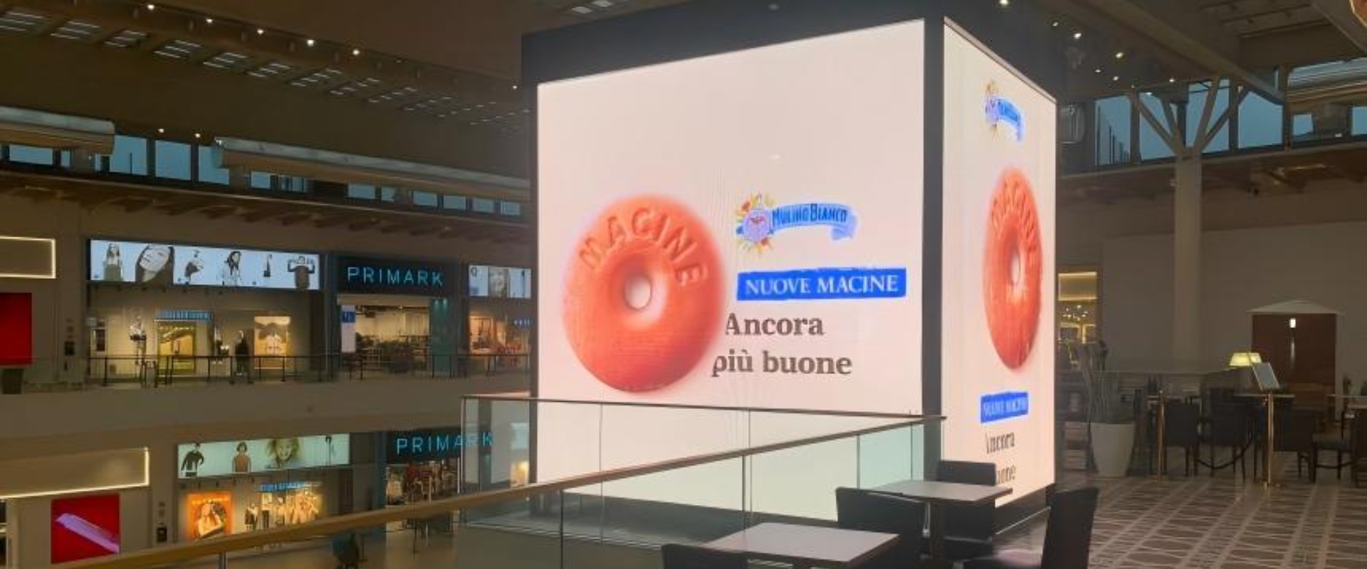 位于米兰IL CENTRO购物中心的数字套餐,共由19个媒体共32面屏幕组成。 凭借其优越的地理位置与高规格硬件配置展现出显著的传播优势。该购物中心 坐落于伦巴第大区核心商圈,日均客流量超150万人次,为广告主提供了庞大的 潜在受众基础。多块媒体组合能在消费者购物动线中形成沉浸式传播场景,尤其 适合快消品与奢侈品品牌进行集中式营销爆破。