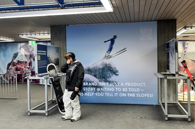 达沃斯坐落于壮丽的群山之中,不仅是欧洲海拔最高的城镇,也是欧洲最大的冬季运动中心之一。达沃斯几乎是单板滑雪、速降滑雪、北欧滑雪、冰上运动爱好者以及冬季徒步者的理想天堂。达沃斯距离最近的国际机场——苏黎世机场约150公里,车程约1.5小时,方便世界各地的游客前来体验阿尔卑斯的冰雪魅力。作为滑雪者上下山的关键节点,所有使用该缆车的游客都会经过此处,确保广告被广泛接触。乘客在等候缆车或整理装备时,视线不可避免地接触到周围环境中的广告内容。