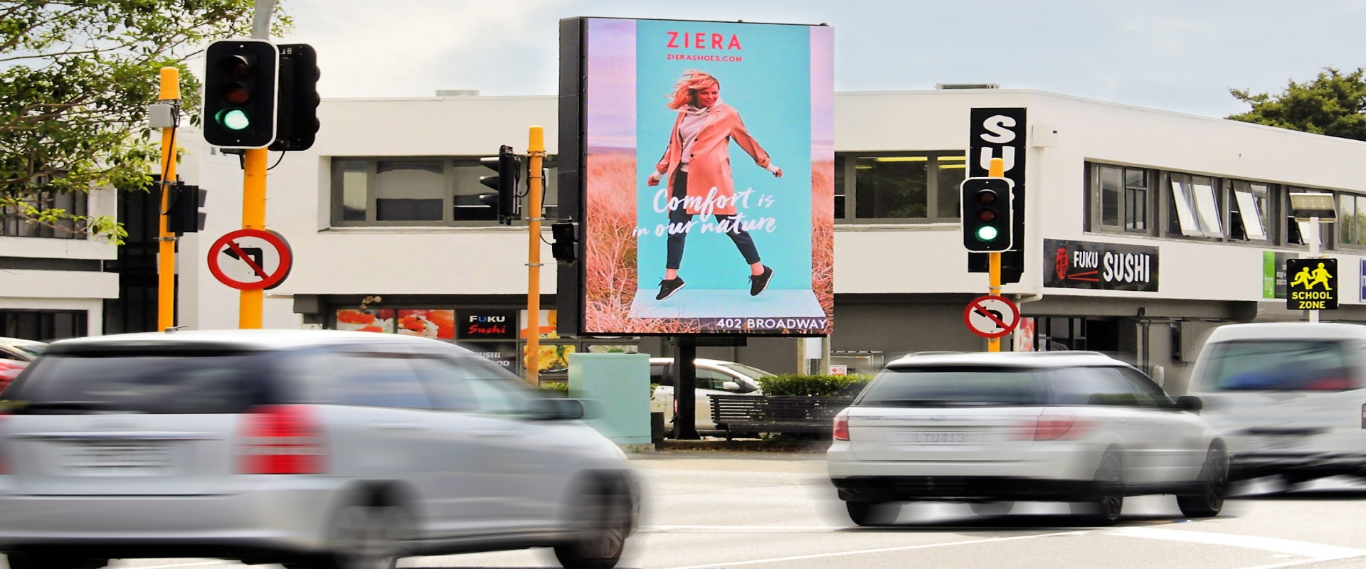 媒体位于马努考和欧文斯路的拐角处,位于红绿灯处,行人车辆有很长的停留时间,能有效增加画面在受众人群中的曝光的。