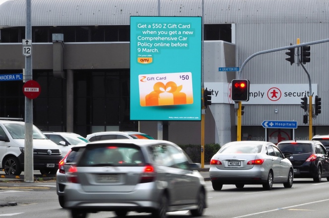 媒体位于格拉夫顿路和开伯尔山口繁忙的十字路口,紧挨着红绿灯,提供受众以独特的近距离观看。 能够捕捉到通往纽马克特、格拉夫顿、东湾和高速公路坡道的繁忙交通。