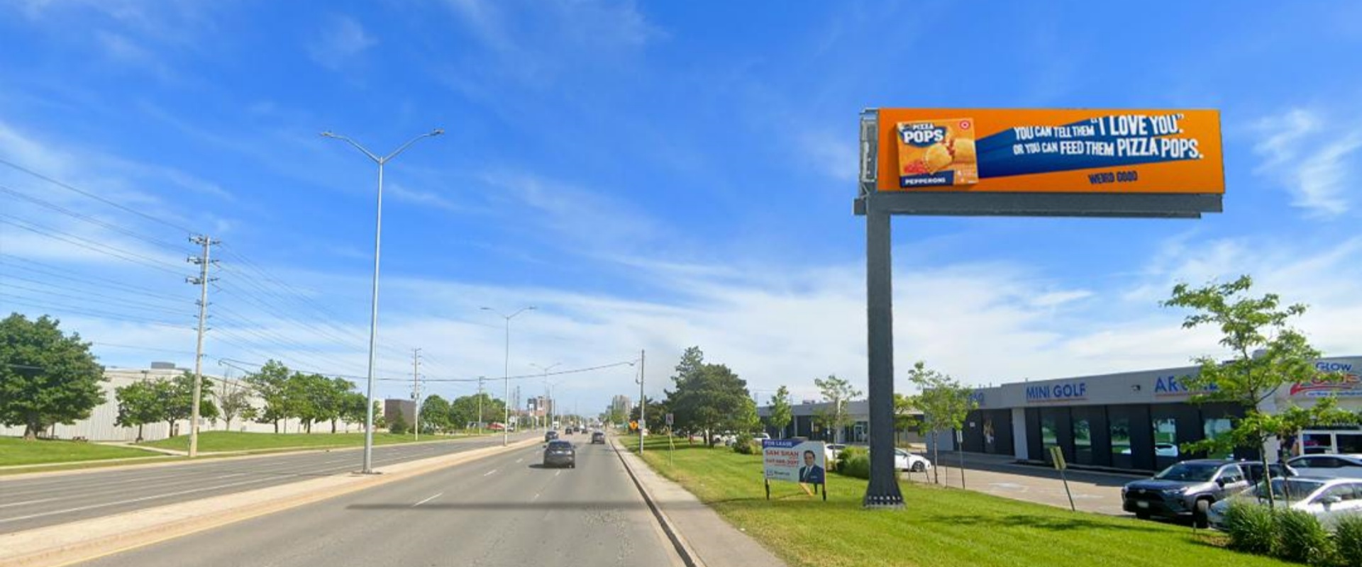 位于 Dixie Rd. 与 Eglinton Ave. W. 交叉口,且靠近红绿灯,车辆与行人停留时间更长,广告观看更充分,避免 “一闪而过” 的无效曝光。作为连接 401 高速公路的南北主干道,日常车流量基数大,能覆盖大量通勤、跨区出行的人群,实现广告的广域传播。周边有快速服务餐厅(QSR`s),意味着流量以有即时餐饮消费需求的人群为主,临近汽车经销商,能自然覆盖有购车、修车、汽车周边消费需求的人群。