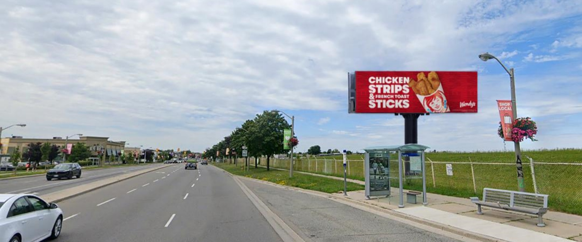 紧邻 Yorkdale 购物中心和大型连锁零售店(big box stores),流量以有购物、休闲、消费计划的人群为主,消费意愿和购买力更强,位于 Allen 快速路 Wilson 大街出口的红绿灯处,车辆驶出快速路后需等待信号灯,停留时间更长,广告信息能被充分观看,避免快速通行中的 “无效曝光”,大幅提升信息接收率。作为 Allen 快速路的出口节点,能覆盖从快速路进出城、跨区通勤的大量车辆,不仅触达本地商圈人群,还能辐射周边区域的潜在消费者,扩大广告覆盖范围。
