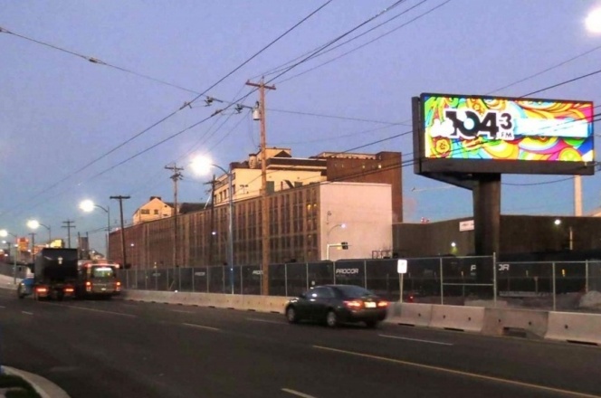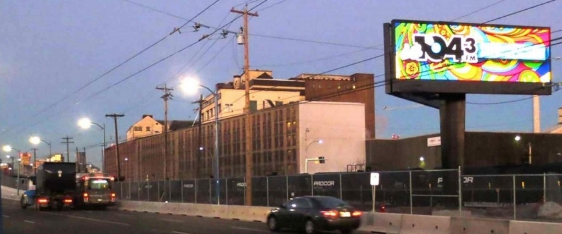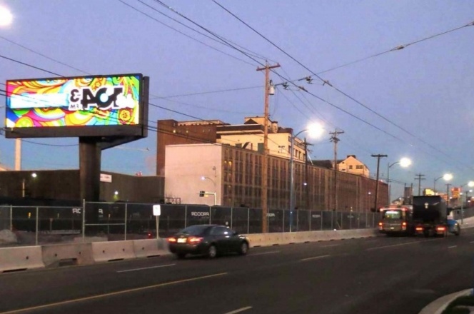 这个数字显示屏幕距离地面35英尺高,位于城市核心的东侧,目标是从1号高速公路进出城市的司机。这里也是北岸居民的主要城市入口。