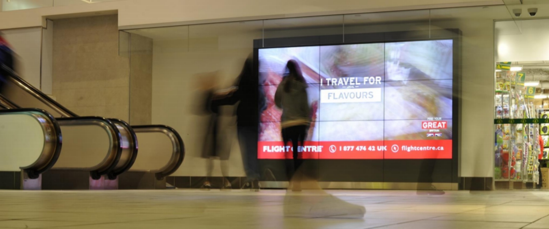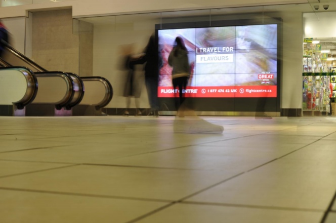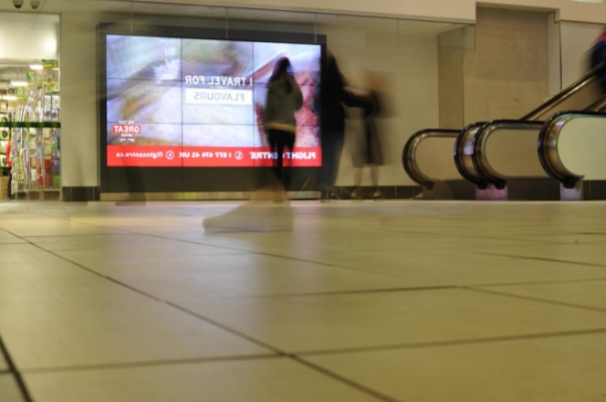 该媒体位于市中心,可吸引从海滨轻轨站进入海港中心购物中心的客流,其目标客户群是办公大楼工作人员、西蒙弗雷泽大学的学生以及前往温哥华盖斯镇和金融区的人群。