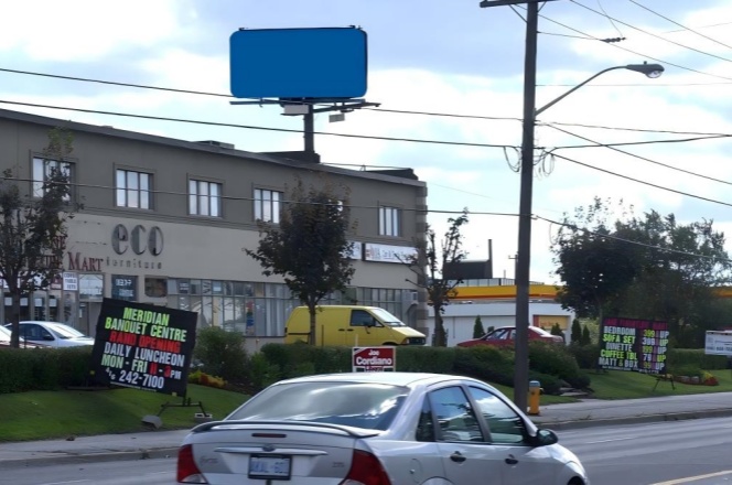 这是连接多伦多市区与北部区域的重要通道,交通量大,是通勤和运输的必经路线。靠近 Maple Bush Ave. 的居民区,该区域以中等收入家庭为主,周边住宅密集,广告面向驶入多伦多方向的车辆,能在早晚高峰时段吸引大量驾驶者注意。许多居民通勤至市中心或周边商业区,广告频次高、重复曝光,强化品牌认知。此处无遮挡,广告牌位于开阔地段,白天自然光充足,夜间可搭配照明吸引注意。此段道路限速一般较低(尤其在居民区附近),车辆经过时间较长,有助于广告被完整阅读。