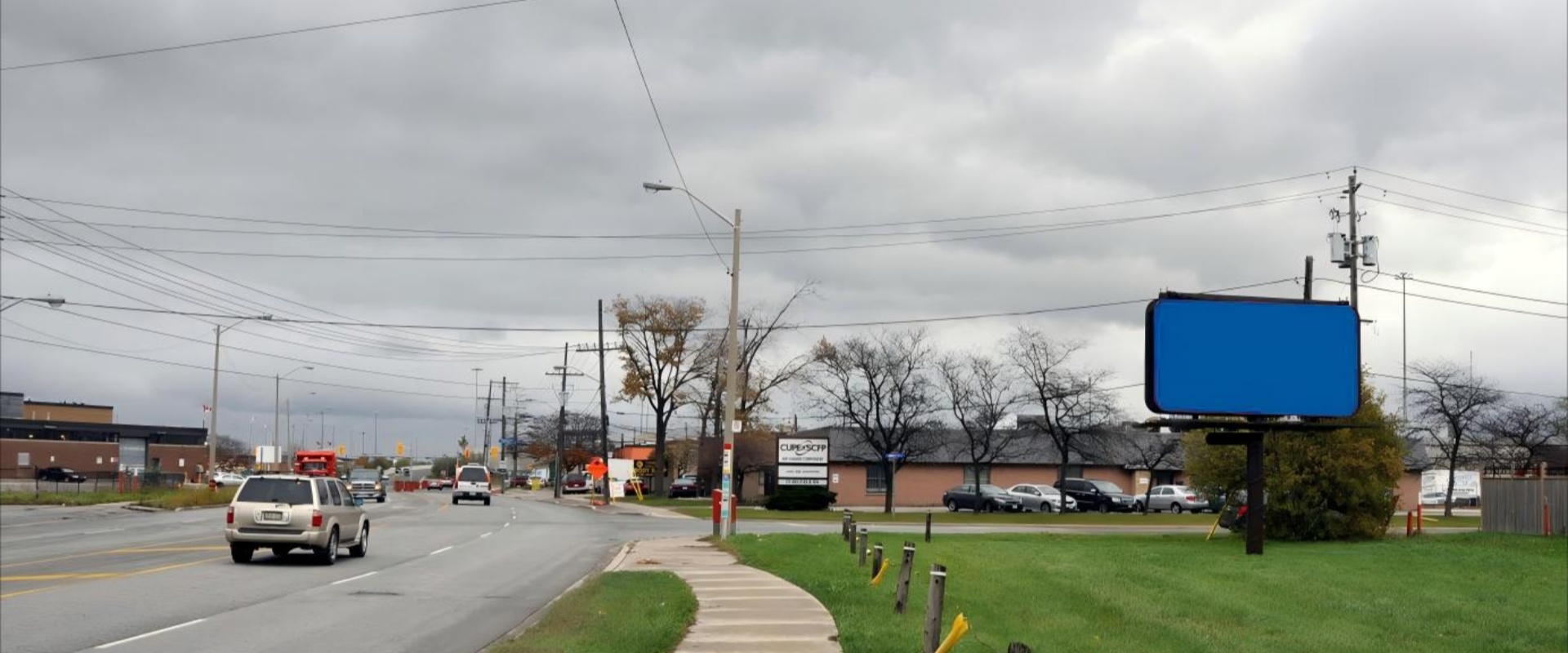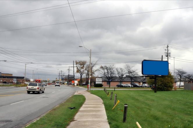 Belfield Road 与 Kipling Ave 交汇处是多伦多西部交通枢纽之一,接近 Hwy 401 和 Hwy 409,通勤与商业交通密集,是广告黄金地段。该广告位离皮尔逊机场不远,能触达机场相关人流(机场员工、乘客、接送者等)。车辆驶向 Kipling Ave 时必须经过,位置显眼、无遮挡。作为通往机场、高速公路和工业区的主要通道,广告可触达上班族、货车司机、商务旅客等多样受众。位置无遮挡,交通信号灯控制,车速缓慢,保证广告停留视线时间长。