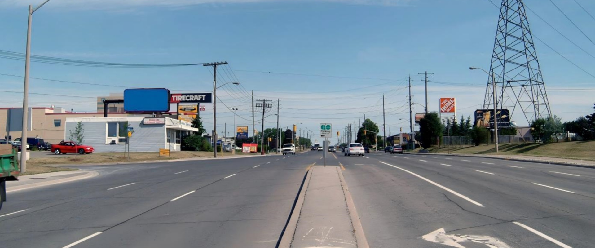 Kipling Avenue 是多伦多 Etobicoke 区的主要南北干道之一,车流量大、使用频率高,连接 Hwy 401、427 和工业区域。面向北向车流,正对驶向 Bethridge Rd 或北上去往高速和工业区方向的车辆,视野无遮挡、强曝光。周边为成熟的工业园区、仓储区和配送中心密集地,广告能精准覆盖工作日高频通勤车流与货运车辆。该区域是仓储物流重镇,大量上班员工、司机、维修技工每日通勤,广告可实现高频重复曝光。来往 Mississauga、Etobicoke、机场区域的车流常年不衰,全天候曝光效果好。