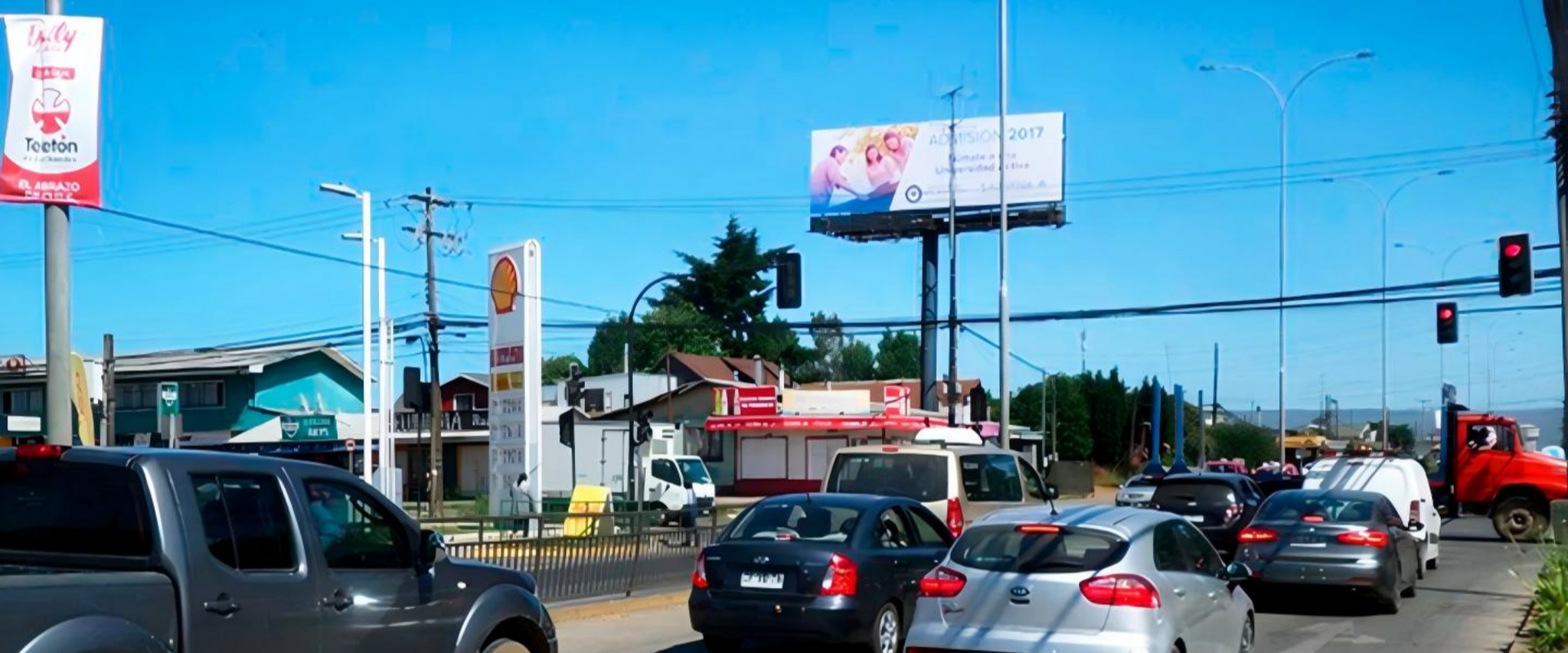 Picarte大道是Valdivia最主要的南北交通轴线之一,广告位处于编号3037的路段,连接市中心与多个住宅区、商业区及大学区域,地理位置优越。附近聚集有商店、超市、加油站、餐饮店、药局等民生配套,是居民日常活动频率极高的区域。无论是早晚通勤高峰,还是白天购物和校区活动时段,该路段人车流量保持持续性,保障广告曝光效果。居民出行路线固定,重复曝光高,适合建立品牌长期心智,非常适合做“每日陪伴型”广告策略。