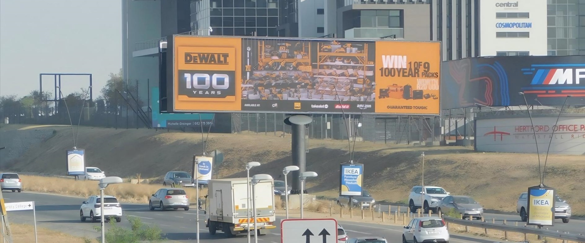 Allandale Road 是进入 Midrand商业区 的主干道之一,与 N1高速公路交汇,连接 约翰内斯堡与比勒陀利亚。Allandale与N1交界是Midrand最繁忙的交通节点之一,车流量全天不间断,特别是早晚高峰和周末。经过的有商务通勤者、本地居民、跨城旅客和运输车辆,广告覆盖面广泛。毗邻的 Waterfall Estate 是高端住宅区,与商业办公综合体连成一片,是南非增长最快的都市圈之一。