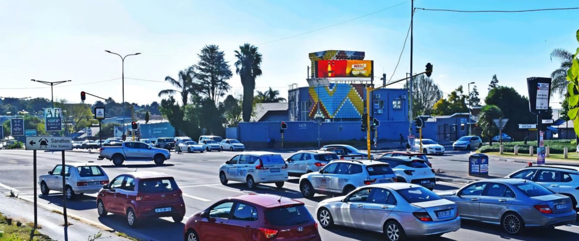 此地是 Grayston Drive 的重要交汇点,紧邻主干道,车辆通行频繁。灯控十字路口可使广告内容在等红灯时被充分浏览,曝光时间更长、更集中。紧邻 Sandton CBD 商务区,周边办公楼林立,白领上班族是高购买力人群。同时也临近 Benmore 高端住宅区,可辐射到居住在此的中高端家庭用户。Grayston Drive 是前往 M1 高速和 Sandton 市中心的重要交通干道。上下班高峰时段交通拥堵,广告牌成为等待时的视觉焦点,广告记忆点增强。