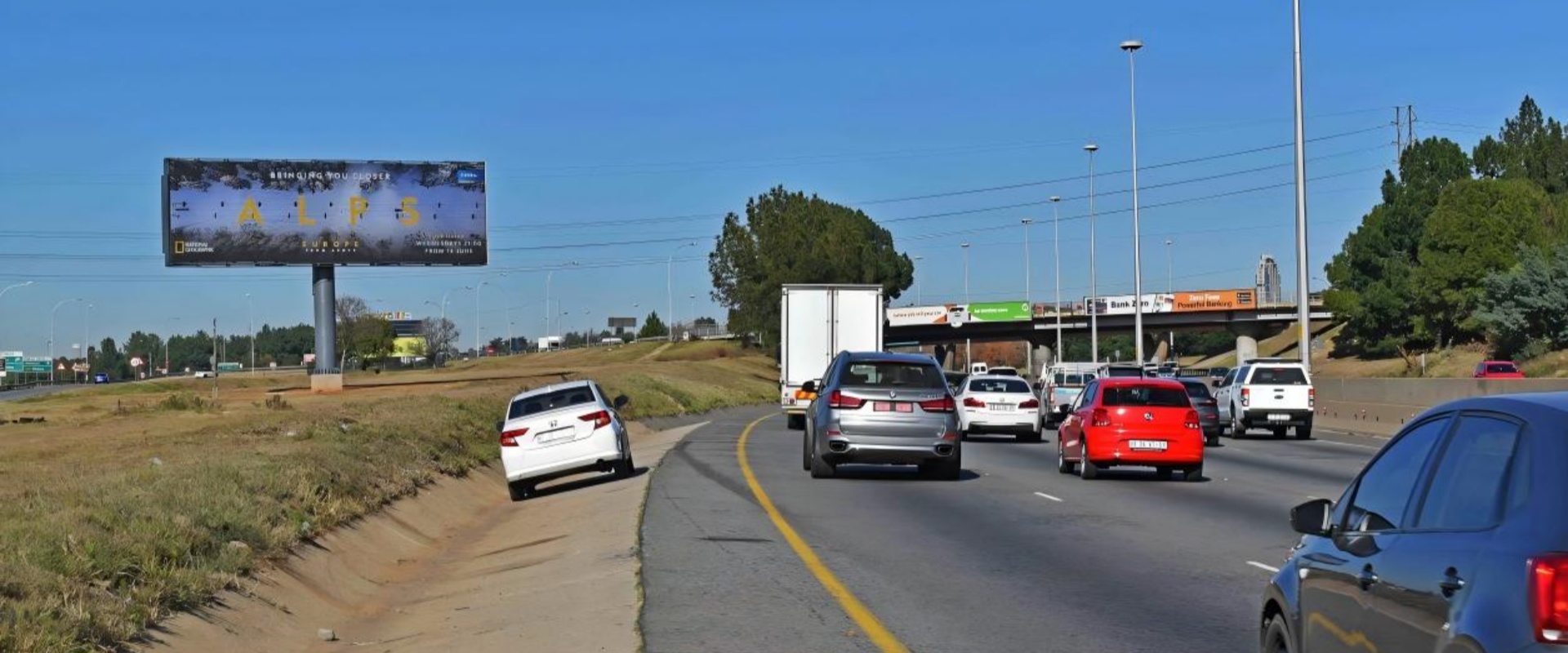 M1 是南非最主要的高速公路之一,连接 约翰内斯堡市中心、Sandton、Midrand 和 Pretoria(比勒陀利亚)。Woodmead Off-Ramp 是重要出入口,早晚高峰时段车辆常常缓行或拥堵,广告易于被反复注意和记忆。Woodmead 是一个重要的商业与IT产业聚集地,附近有多个商务园区(如Woodmead Business Park)和跨国公司总部。M1高速上的广告不仅能影响本地通勤族,也能触及往返约堡市区的中长途通勤人群。广告覆盖南非最繁忙的经济走廊之一,是品牌全国曝光的黄金点位。