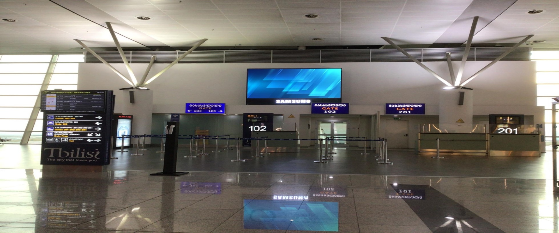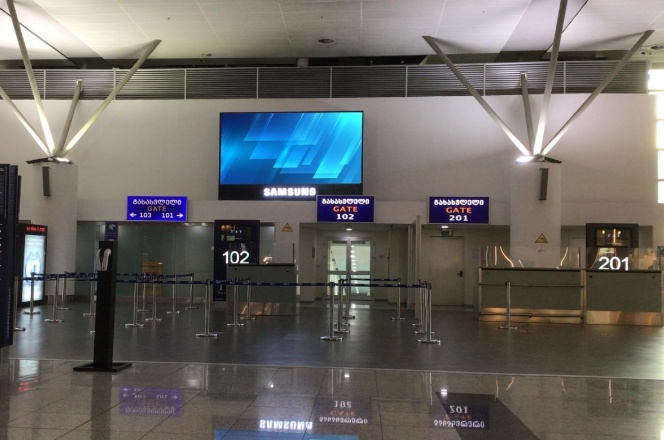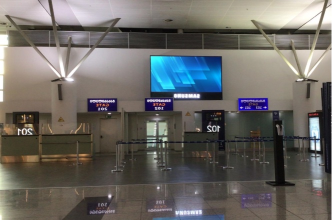 第比利斯机场出发区靠近免税店区域大屏