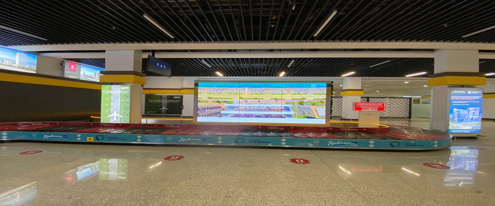巴统机场到达区行李传送带旁大屏