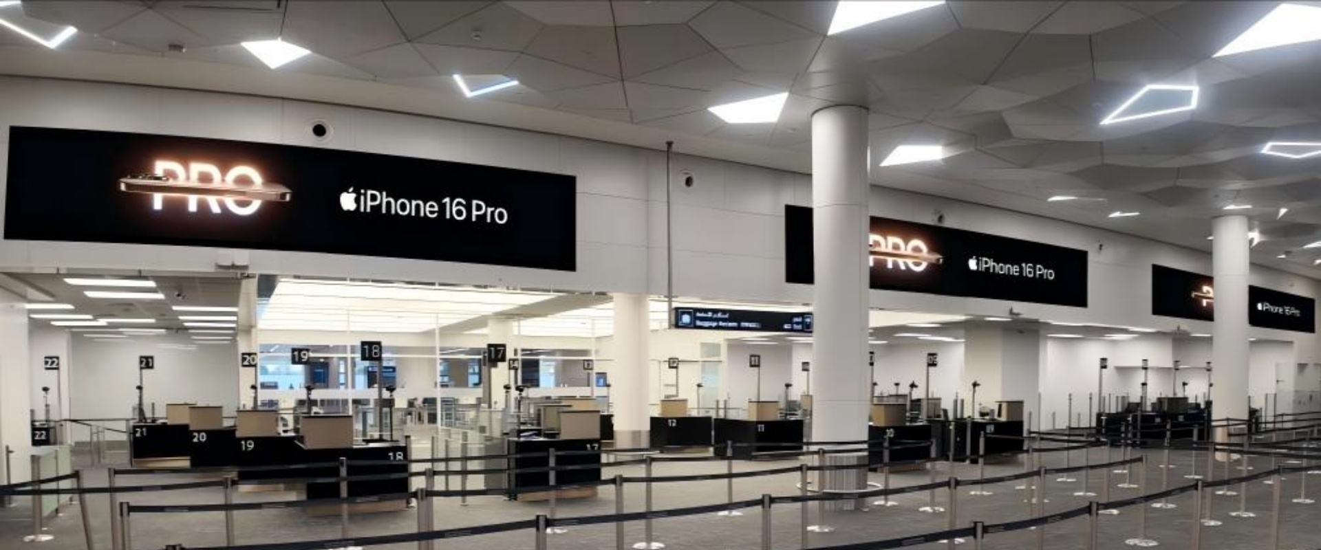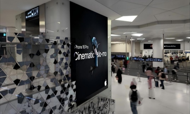 该媒体位于利雅得国际机场T3和T4到达区边检区域,共10面组成, 联动播出,视觉效果震撼,分布于边检区域的关键位置,是各个品牌争相选择的位置。