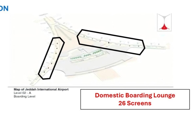 吉达阿卜杜勒阿齐兹国王国际机场不仅仅是一个机场,它更是连接全球穆斯林 与伊斯兰教两大圣地的空中桥梁,是沙特阿拉伯经济、宗教和交通体系中的关键节点。 其规模宏大的朝觐航站楼是独一无二的,而现代化的新北航站楼则代表了沙特在提升 航空基础设施和服务水平方面的雄心壮志。无论是进行商务旅行、休闲度假,还是 完成神圣的朝觐之旅,JED都是进出沙特阿拉伯西部最重要的门户。该媒体位于T1出发, 共46面,可以与客户产生非常生动的互动,可以100%覆盖出发的乘客。