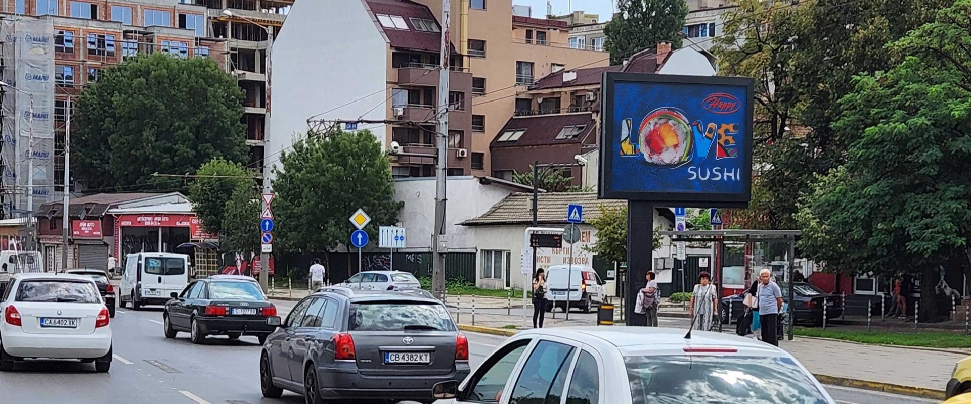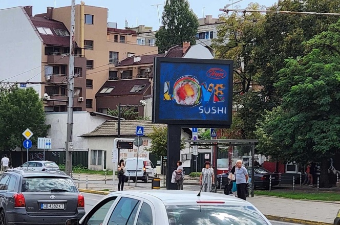 Slivnitsa blvd. 和 K. Velichkov blvd. 是索非亚的主要交通干道,车流量和人流量大。K. Velichkov blvd. 附近有地铁站,如 Konstantin Velichkov 地铁站。Slivnitsa blvd. 也有同名地铁站,交通便利,大量通勤者、购物者和游客等不同类型的人群会经过此处,广告能够覆盖广泛的目标受众,保证了广告的高曝光率。对于经常在该区域活动的人群,如当地居民和上班族,广告牌会反复出现在他们的视野中,有助于强化品牌记忆。