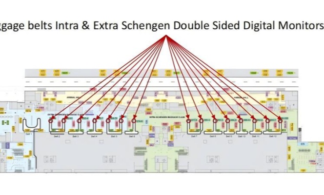 媒体位雅典国际机场国际到达行李转盘处,共有30块双面的电子媒体构成, 不仅可以形成广告联动播出的效果,而且可以100%覆盖所有人群,是所有 乘客必经之处,到达率高,覆盖率高,广告视觉效果震撼。